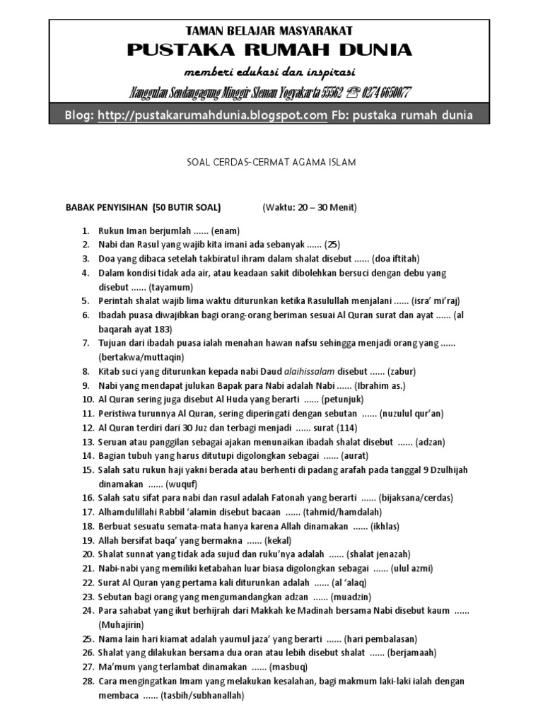 Soal cerdas cermat agama by tri laela didik setiawan sn:75751911. Soal biologi tahun 2011 sila. Contoh soal lomba cerdas cermat sd bank soal ujian. Soal cerdas cermat agama islam 2019. Lomba cerdas cermat tingkat smp paket soal nomor i (satu).